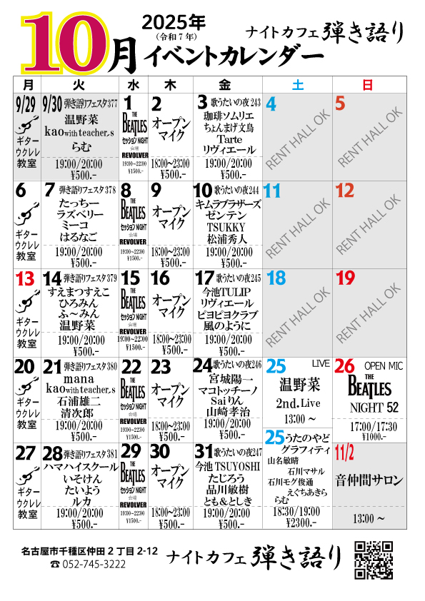 名古屋市今池駅から徒歩6分 気軽な弾き語りライブバー